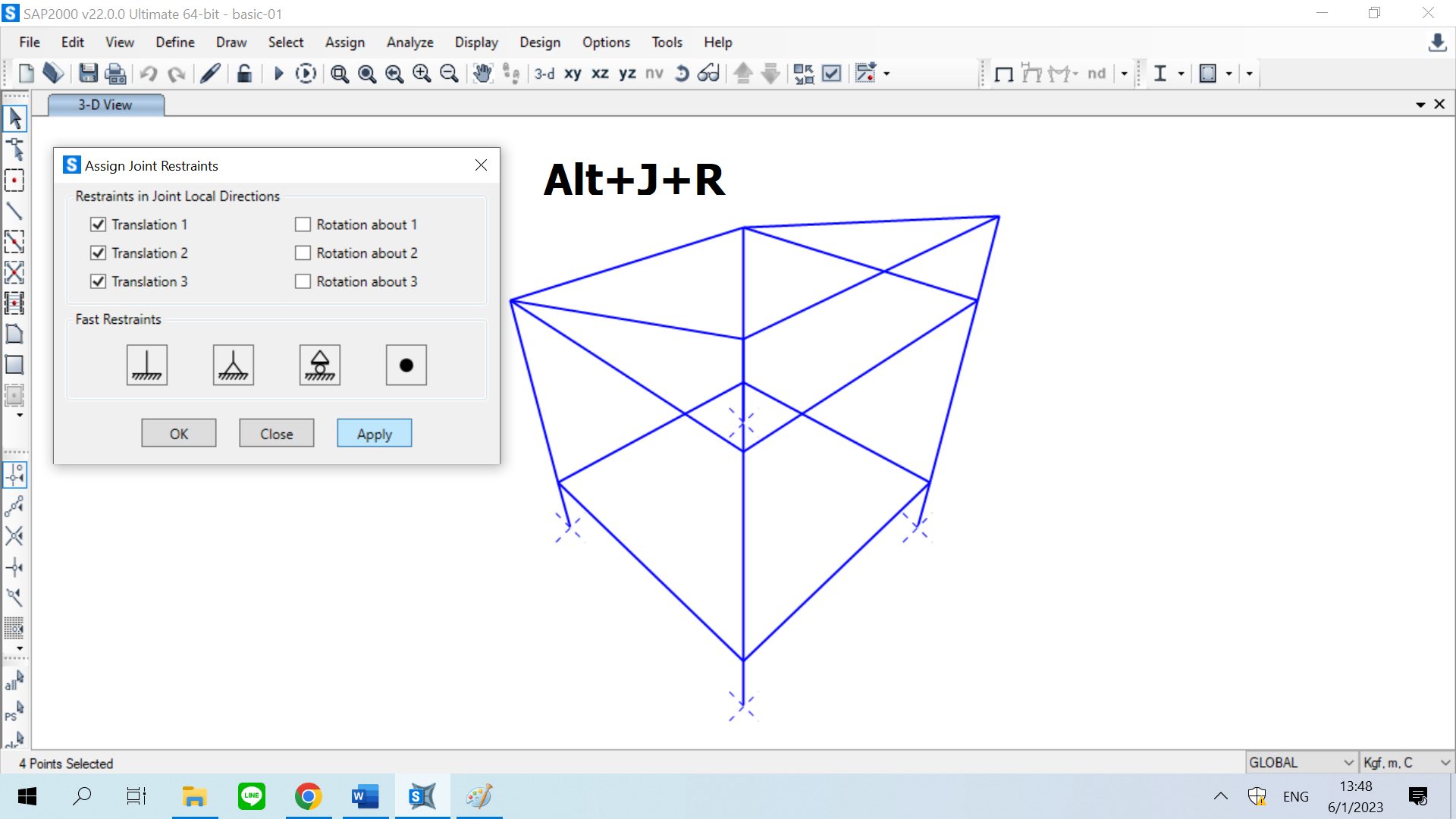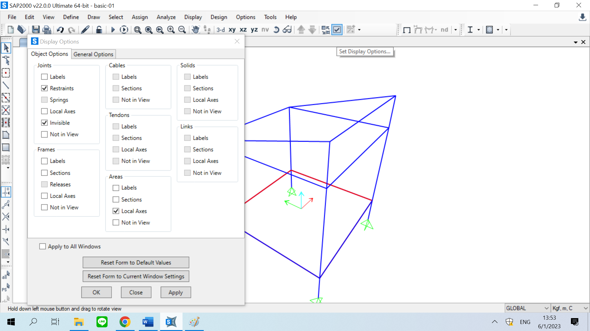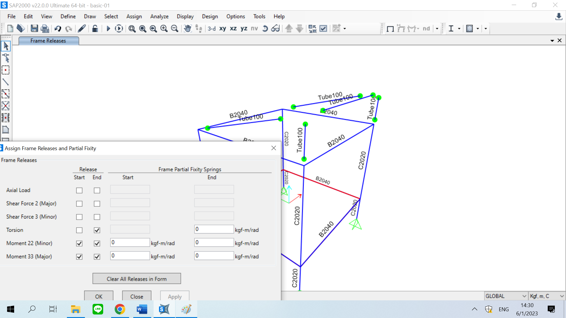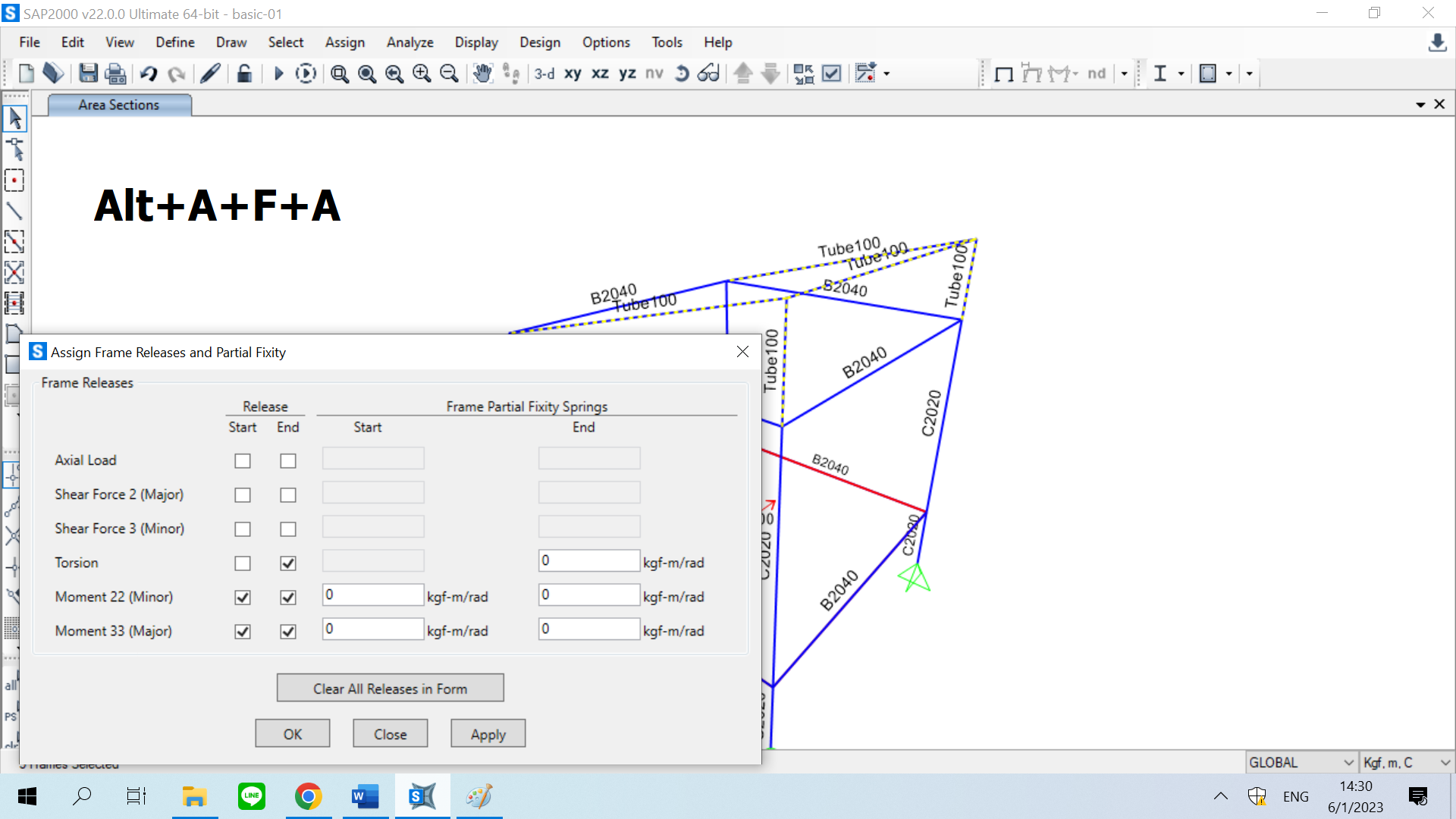 6. กำหนดคุณสมบัติเพิ่มเติมของชิ้นส่วนโครสร้าง เช่น Joint Restraints, Frame Release