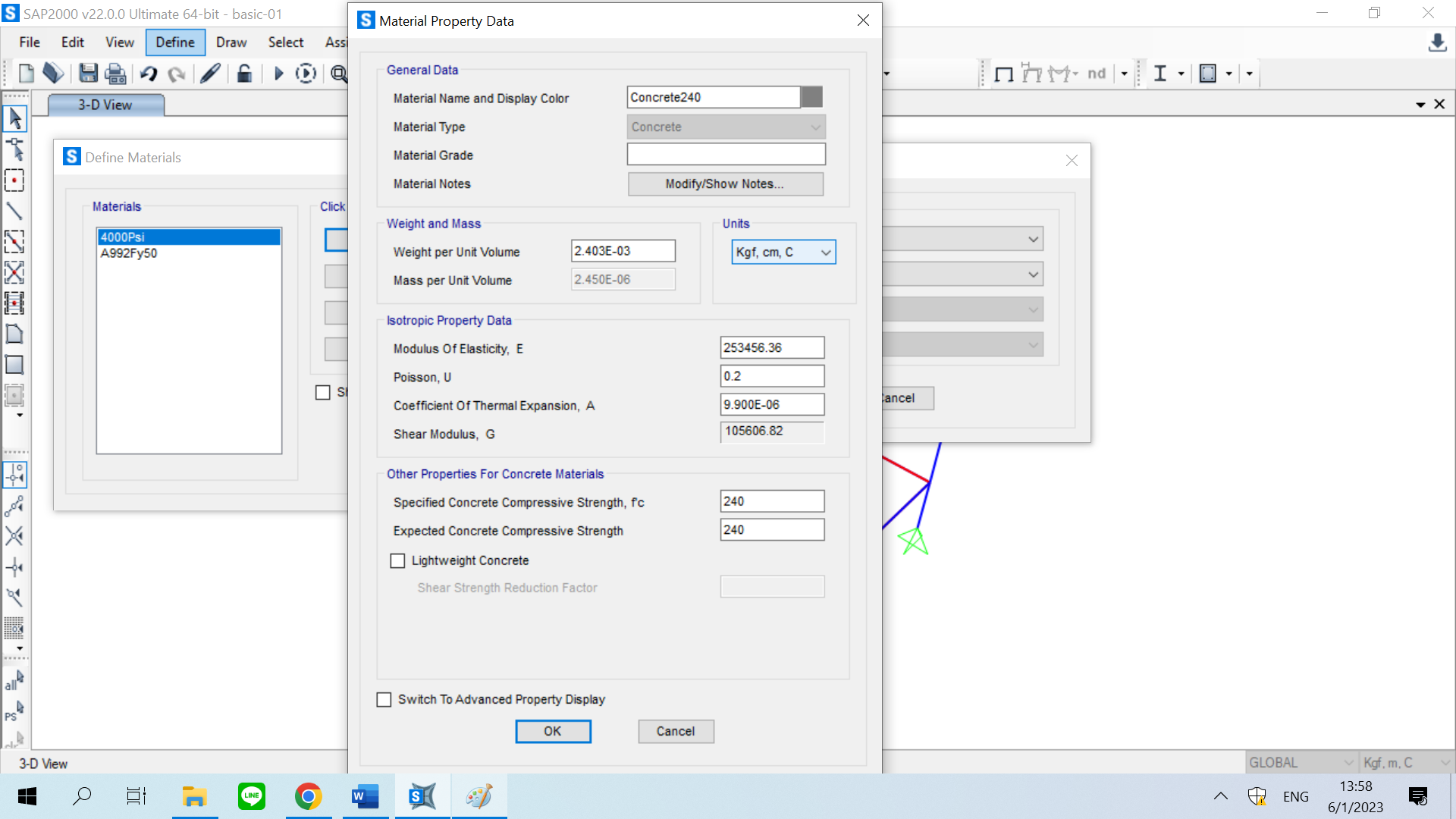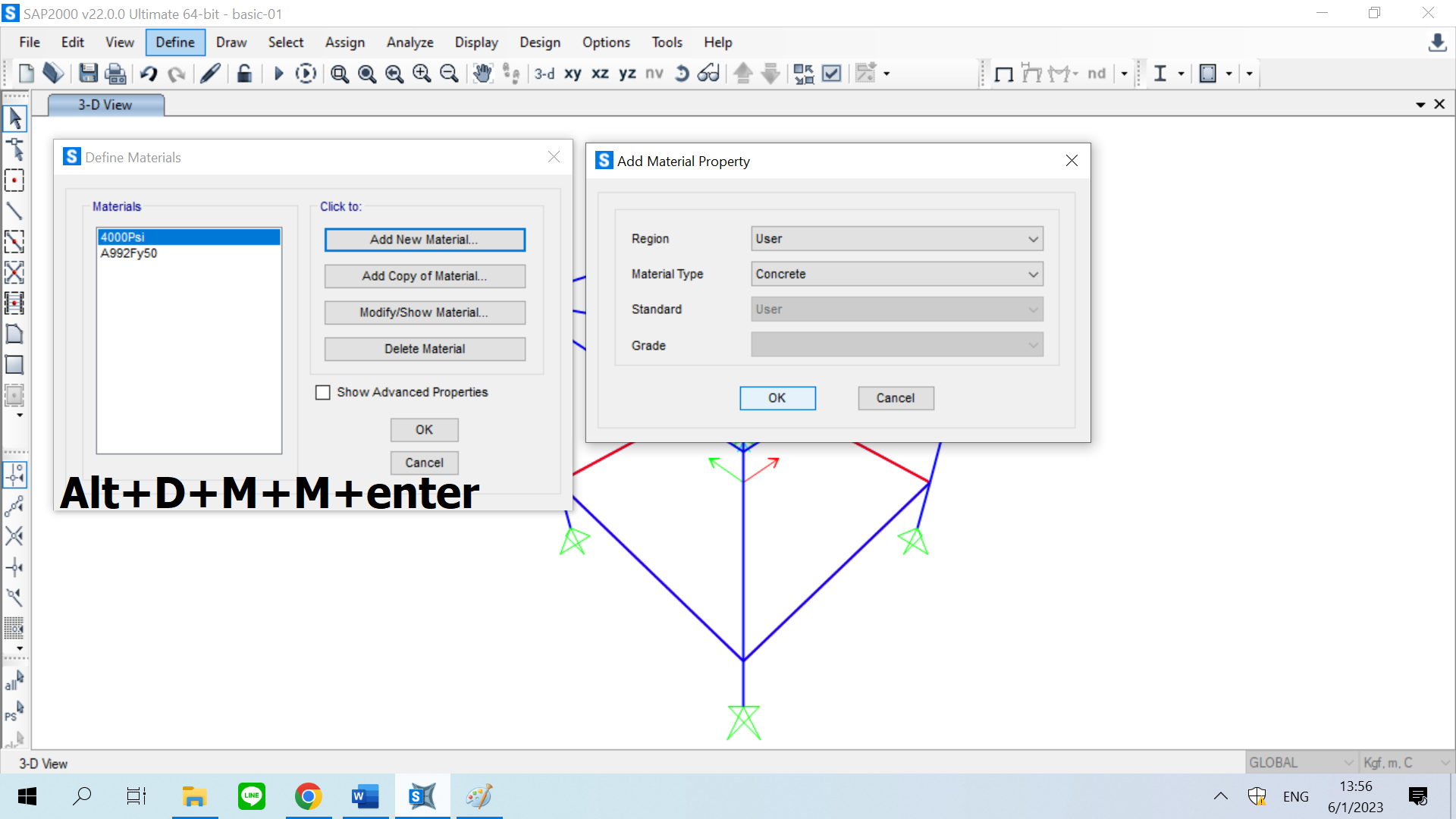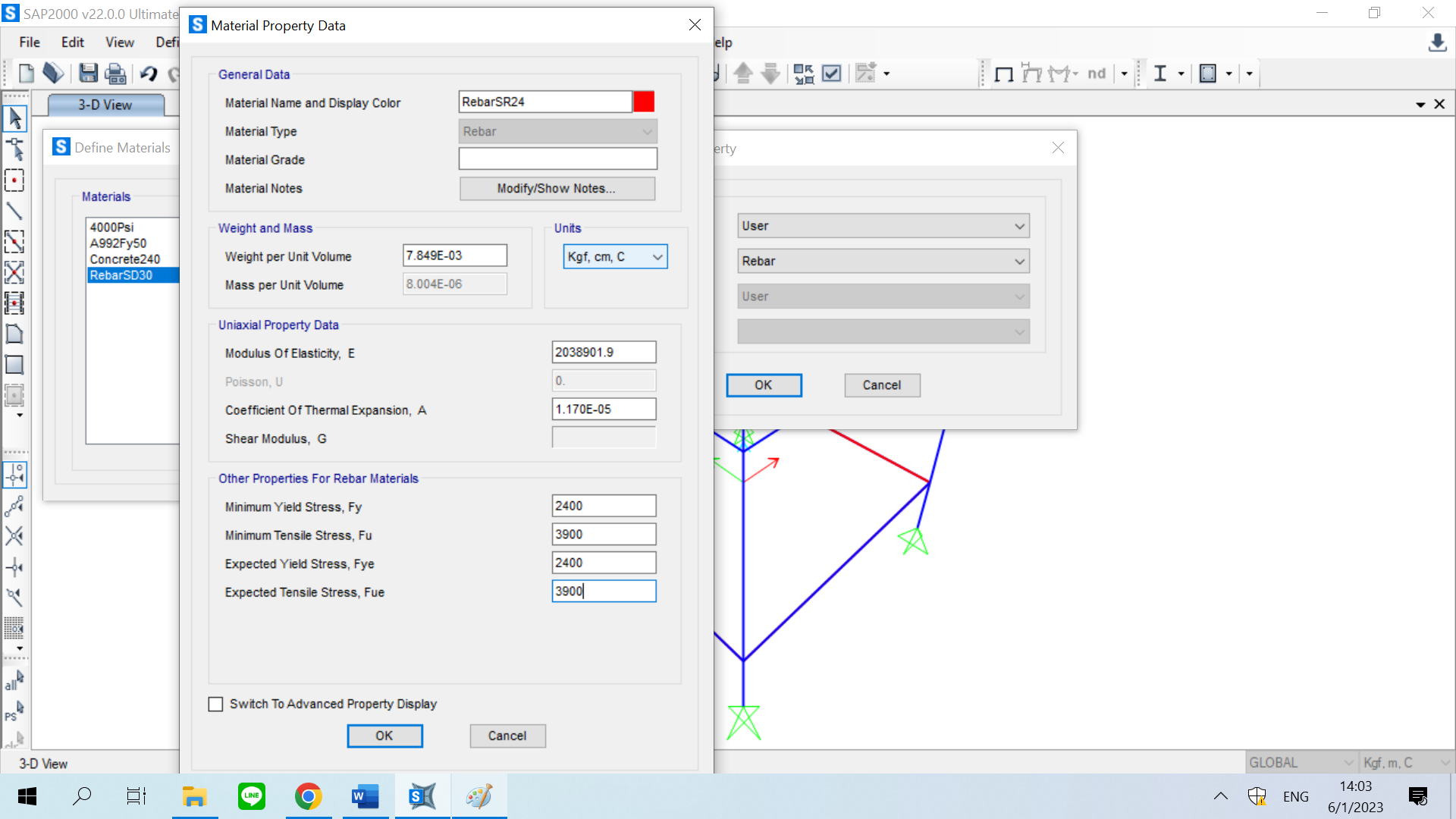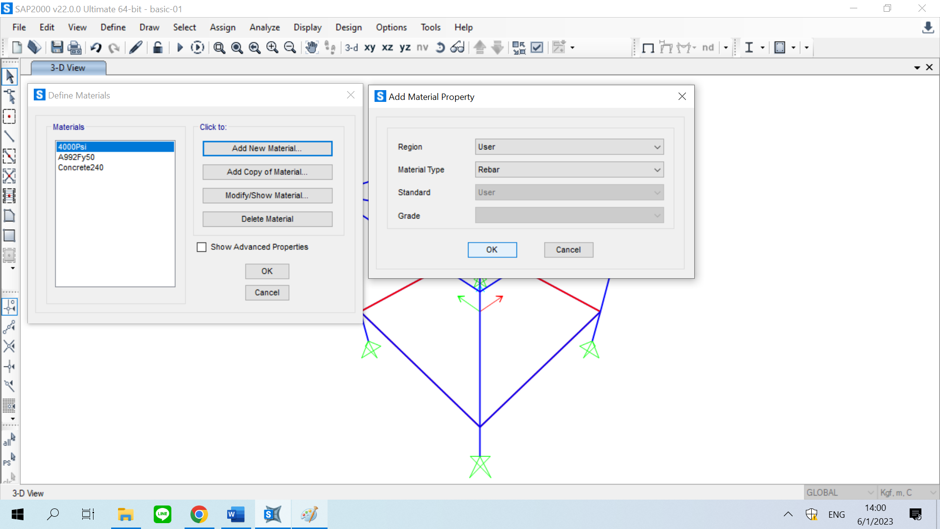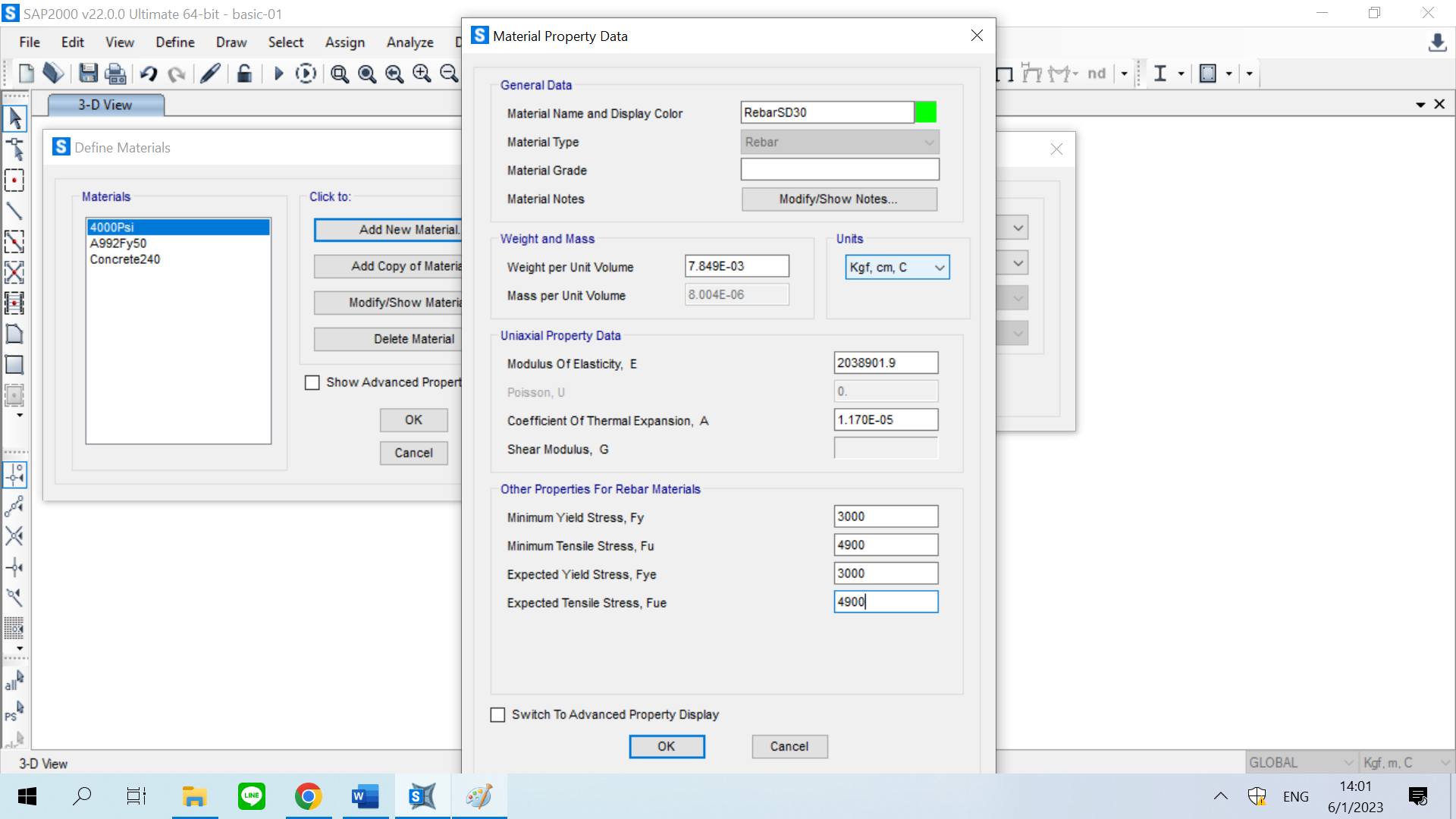 3. สร้างคุณสมบัติวัสดุ เช่น คอนกรีต เหล็กเส้น เหล็กรูปพรรณ