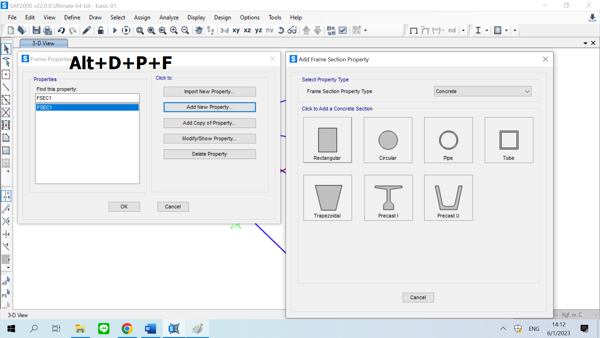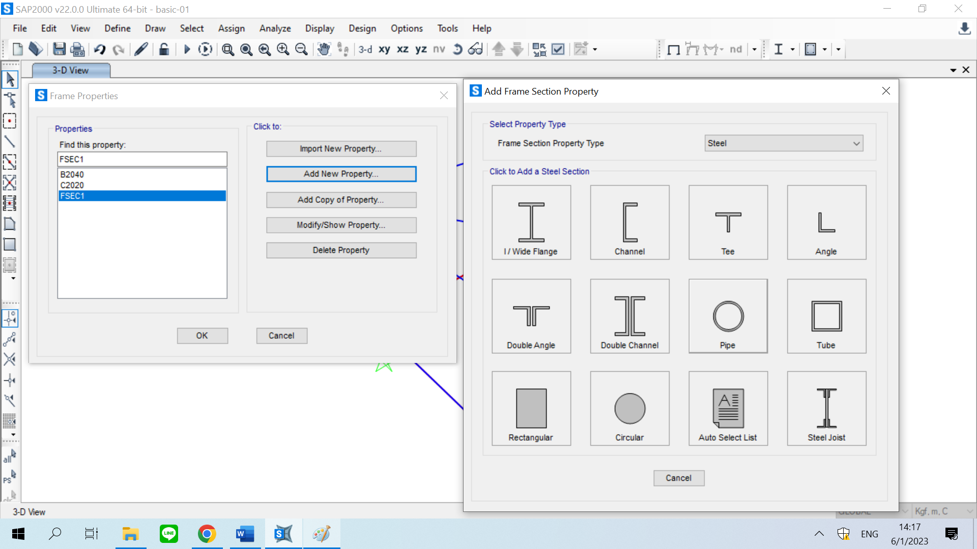 4. สร้างหน้าตัดโครงสร้าง คาน เสา พื้น เหล็กโครงหลังคา