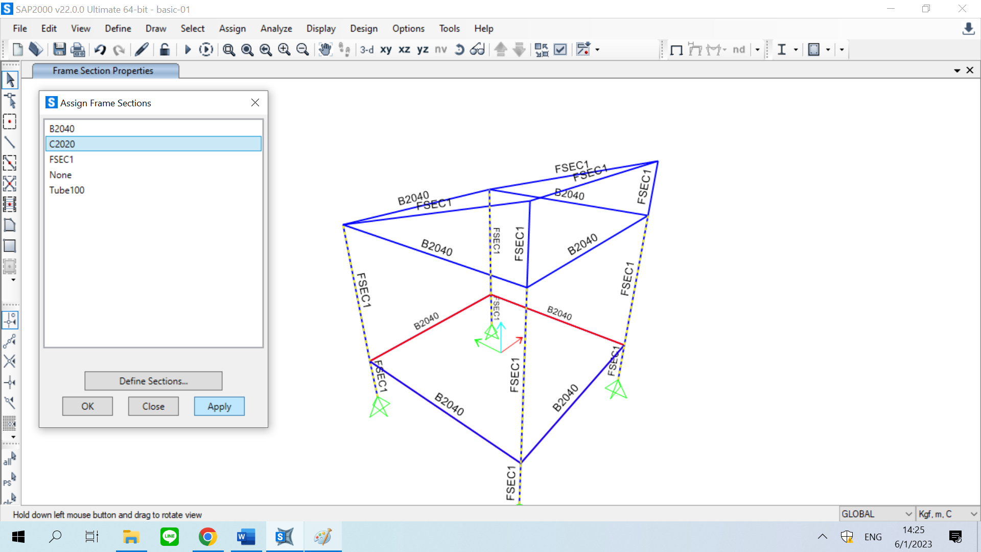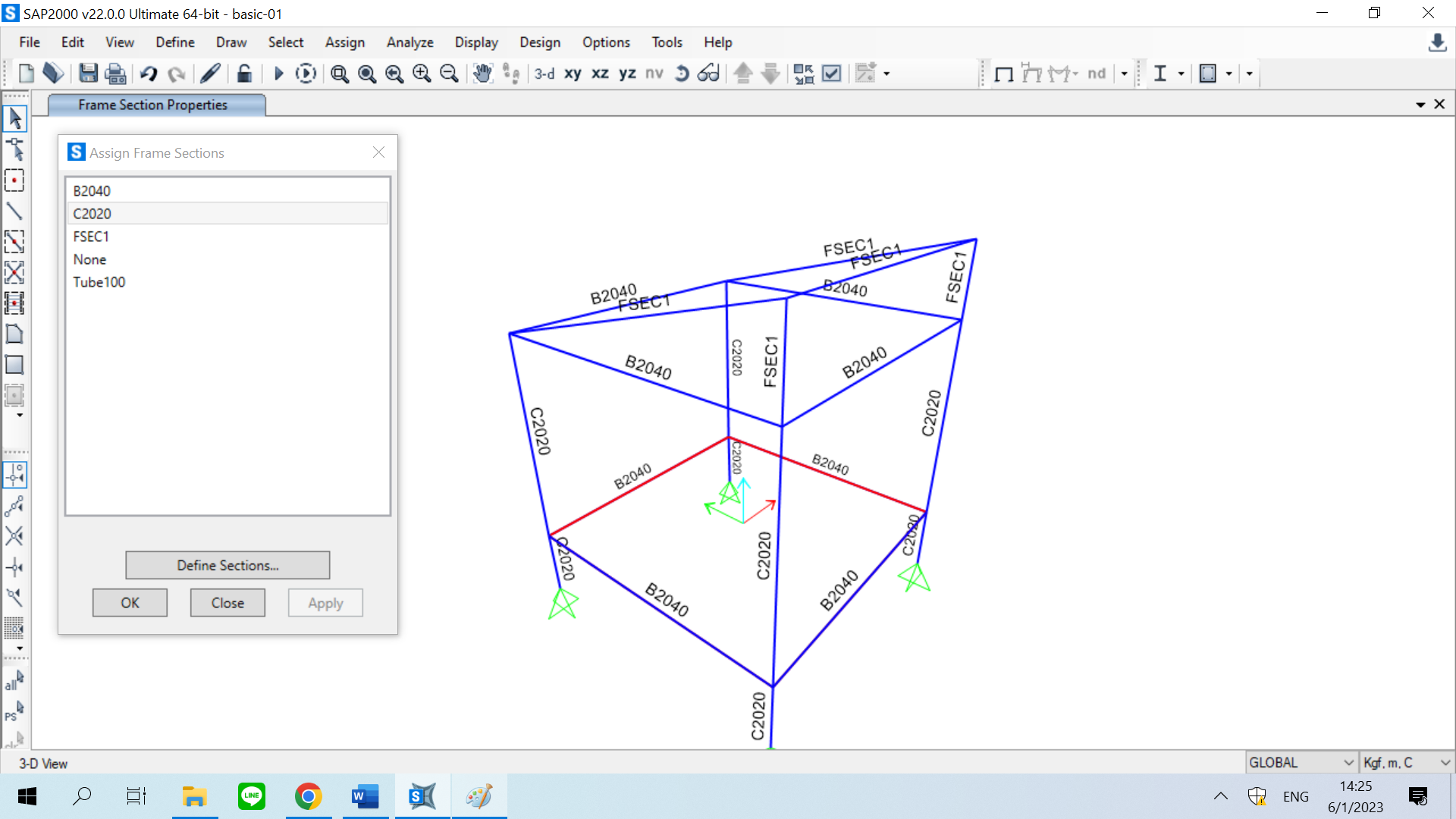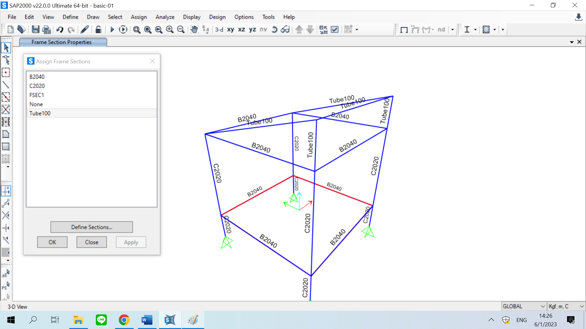 5. กำหนดหน้าตัดโครงสร้างให้กับทุกชิ้นส่วนโครงสร้าง