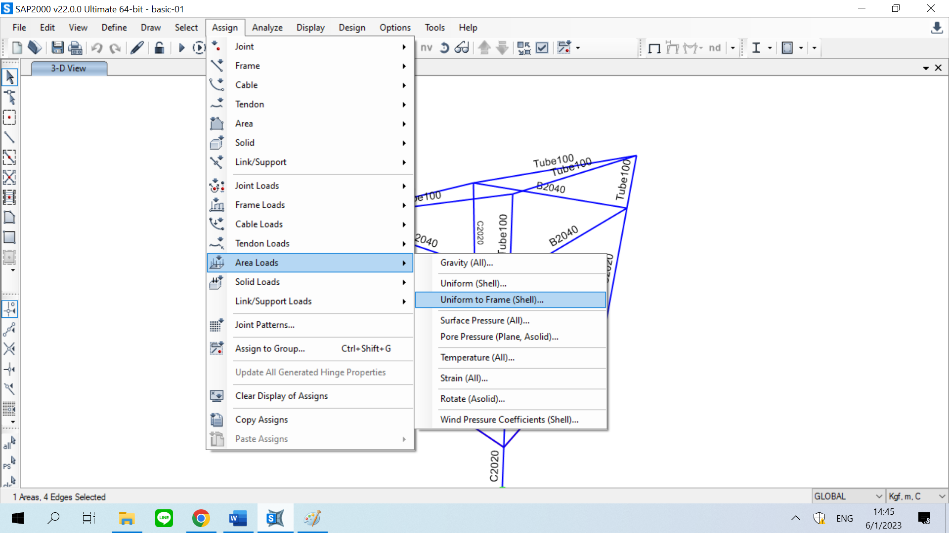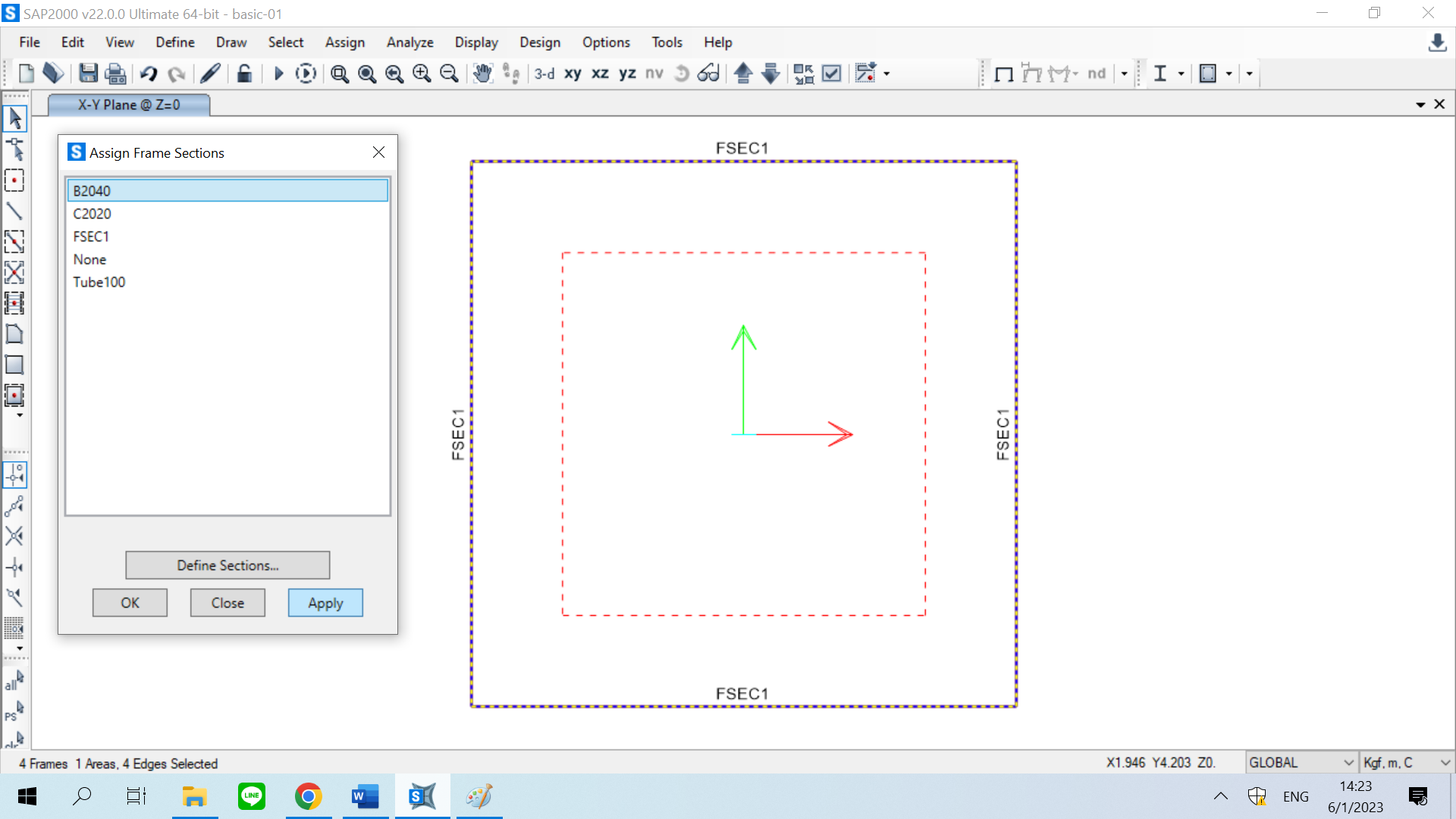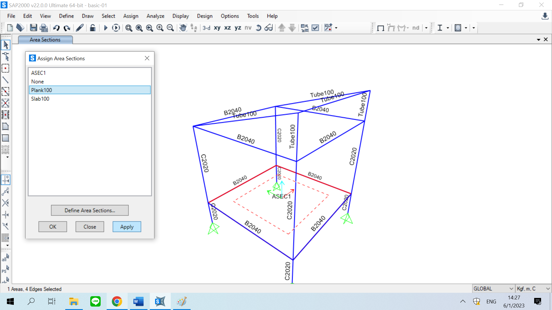 5. กำหนดหน้าตัดโครงสร้างให้กับทุกชิ้นส่วนโครงสร้าง