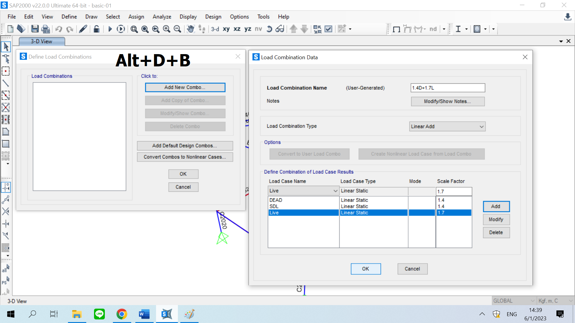 7. สร้างรูปแบบน้ำหนักบรรทุก กรณีน้ำหนัก และน้ำหนักผสม