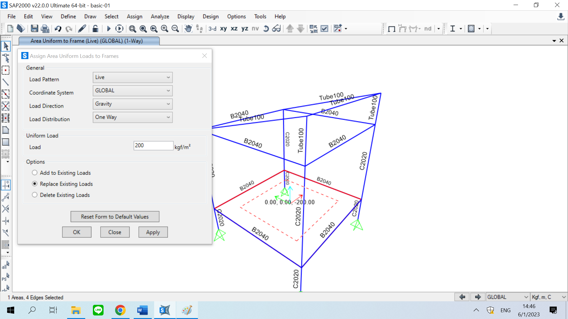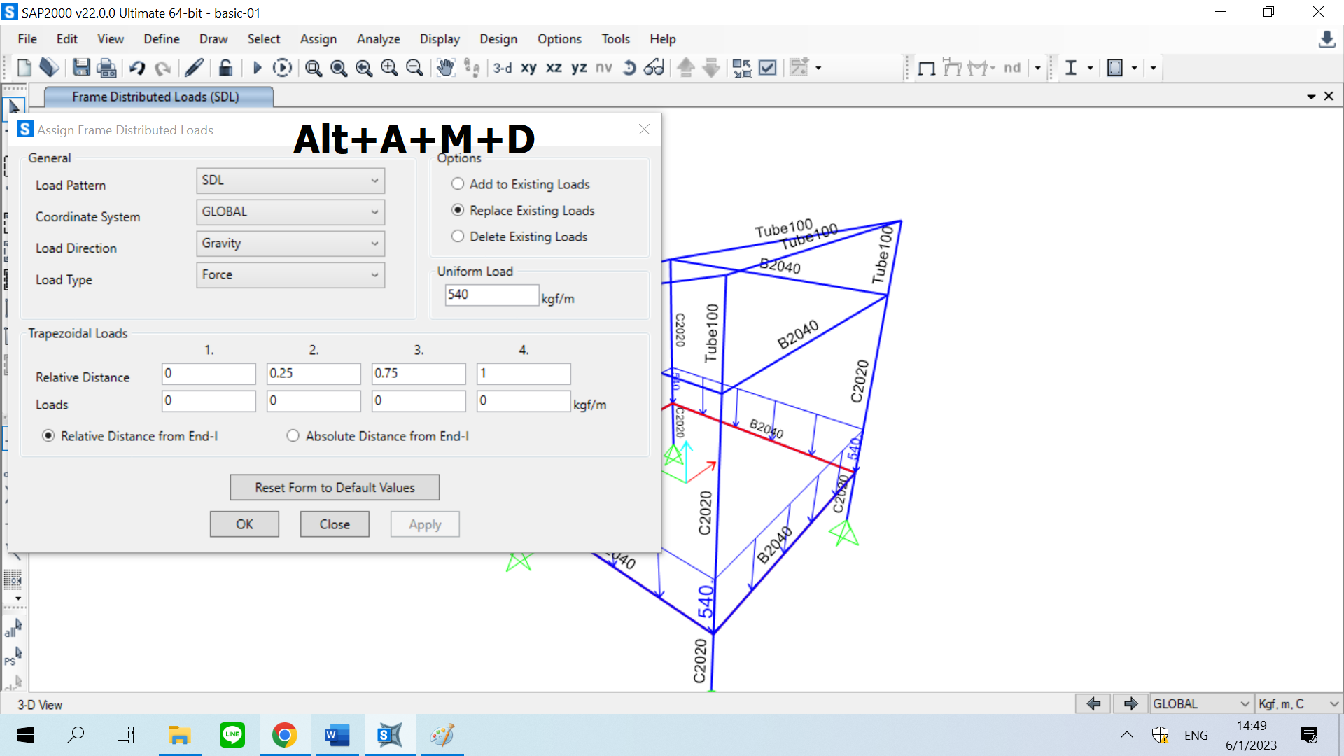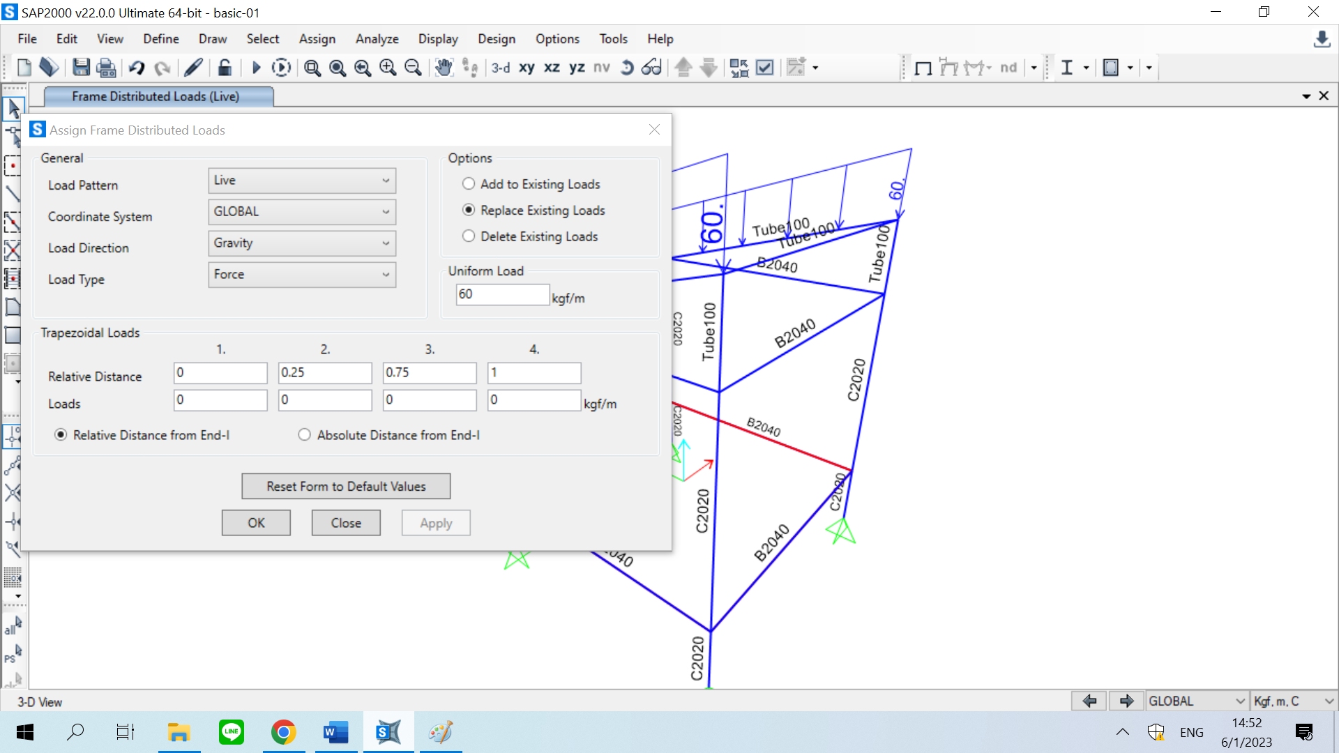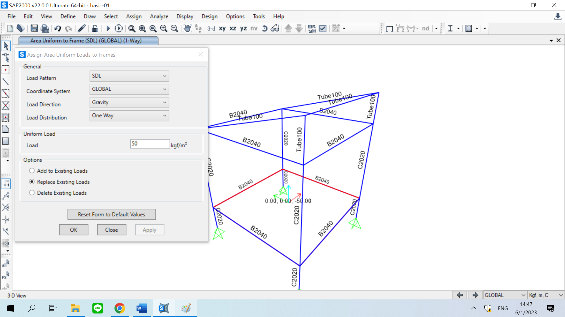 8. กำหนดน้ำหนักบรรทุกให้กับโครงสร้าง เช่น น้ำหนักบรรทุกจรพื้น น้ำหนักผนัง น้ำหนักหลังคา