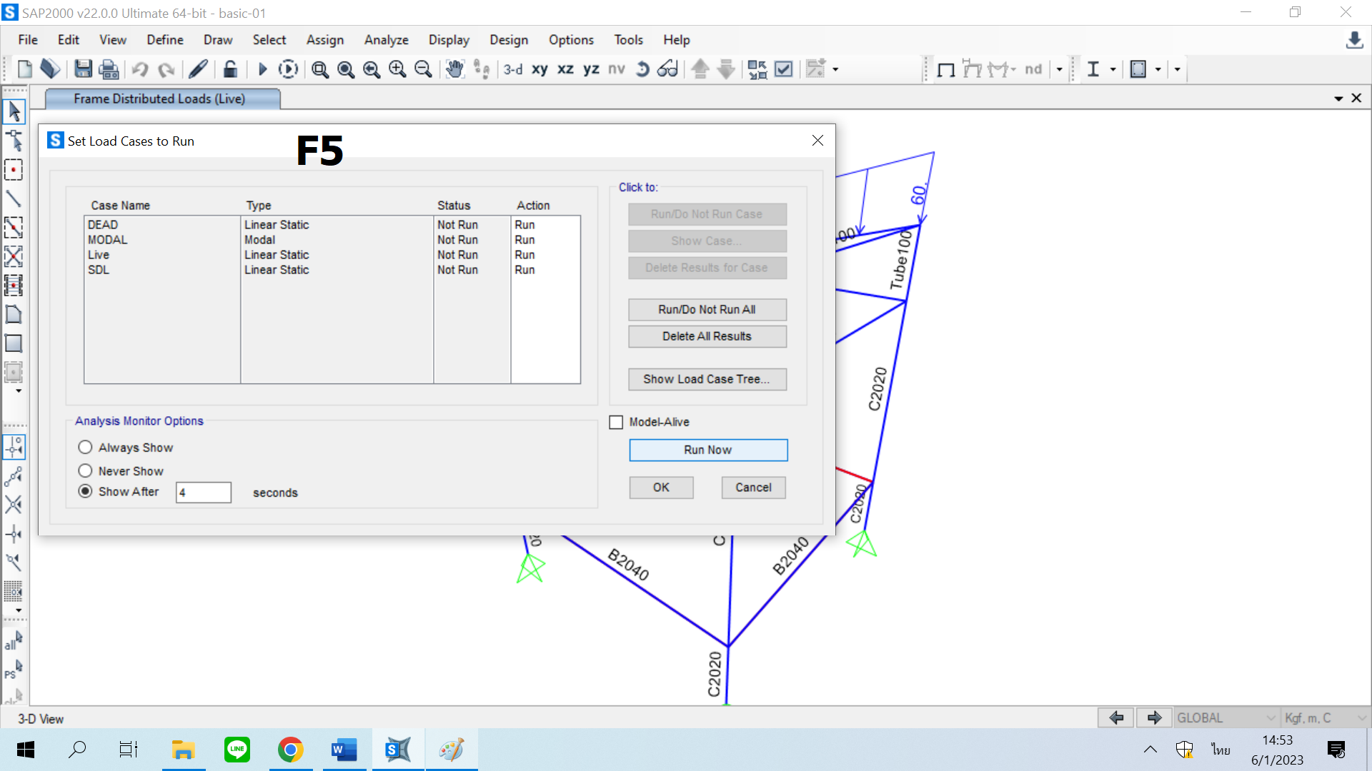 9. สั่งวิเคราะห์โครงสร้าง และออกแบบโครงสร้างคอนกรีตและเหล็ก